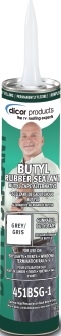 Dicor Products' new gunnable butyl rubber sealant is a single component, solvent release butyl-based sealant specifically designed to provide a watertight primary seal between lapping substrates and joints. It is easy to apply and tool and exhibits superior adhesion to a variety of clean surfaces. Butyl rubber sealant shows excellent resistance to weathering, shrinking and cracking. It's gun-ability allows for a mess-free application, forming an airtight seal and will leave you with a seamless finish. For use on skylights, vents, windows, termination rails. Adheres to TPO, EPDM, PVC, glass, metals, aluminum, concrete, wood and some plastics. Mess-free easy application. Cures to a putty-like consistency. Creates an airtight, strong seal that resists degradation. Coverage results dependent on bead size. UV Resistant. Grey.
