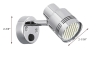 LED RV reading light with brushed nickel finish and MR16 base LED bulb. The LED bulb features 8-30V DC; 66 high power 3528 SMD LEDs; beam pattern 120 degrees; luminous flux 190 lumens; 3.12 watts; color temp 4000-4500K natural white. The 12V DC fixture is made of steel with a brushed nickel finish. Applications include 12 VDC marine and recreational vehicles. Measures 4-3/8" high.