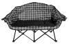 It's a double Lazy Bear Chair! Get ready to get close and personal sharing this 2 seater. Equipped with 2 stem glass holders on either side. One size fits all, rated at 500 lbs. Double 600D polyester fabric. Sturdy 3/4 in black tube frame. Stabilizer feet. Padded back and arm rests. Carry bag included. 38.5" H x 59" W x 24" D. Seat height 16". Weighs 22 lbs. Carry bag not covered under warranty.